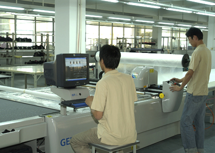 公司采用CAD計算機(jī)輔助排料系統(tǒng)進(jìn)行排料,該系統(tǒng)準(zhǔn)確、高效。鋪料機(jī)代替手工鋪料的優(yōu)點使鋪料均勻、整齊、松緊適宜、降低工人勞動強度。
